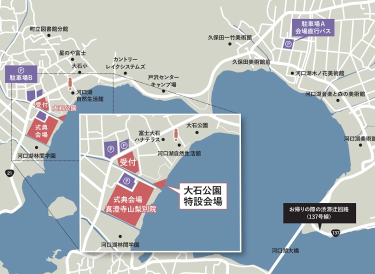 - ※当日は周辺道路の混雑が予想されます。駐車場Bのご利用を予定されているお客様にも駐車場Aへのご移動をお願いする場合がございます。あらかじめご了承ください。